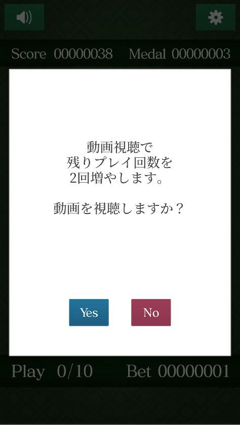10Play終了するか、手持ちのMedalが無くなる(0になる)とゲーム終了です。